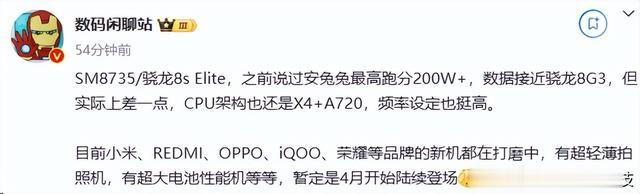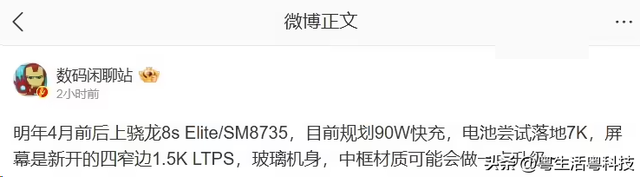 我感觉不会是骁龙8至尊版,而是骁龙8s Elite。