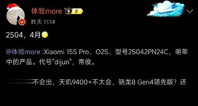爆料表示,小米15S Pro会换上「呼声极高」的处理器,但又不是骁龙8至尊版。