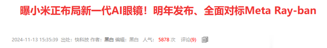 根据爆料显示,小米的新AI眼镜将全面对标Ray-Ban Meta。